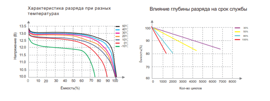 • 6000 циклів при 80% глибині розряду при температурі 25 °C.