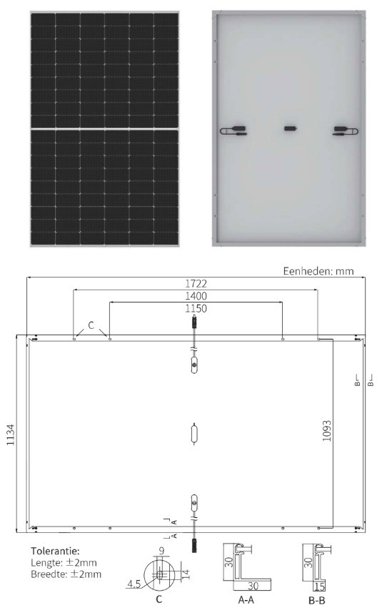 • Розміри: 1722 x 1134 x 30 мм (Д x Ш x В)
